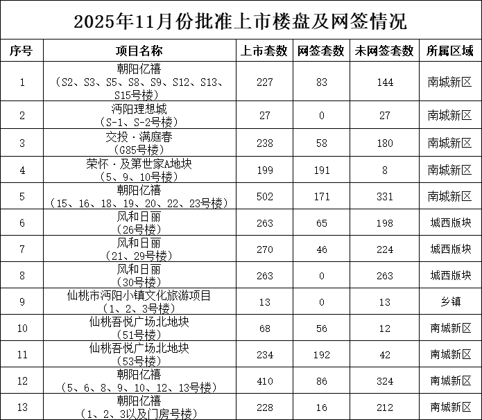 11月份,我市未批准预售新建商品房。