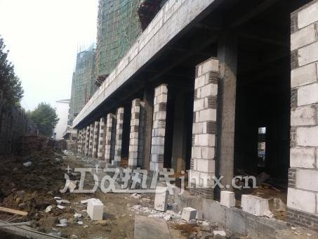 商铺的结构已大致呈现,听工作人员介绍,商铺外立面将采用大理石刚挂材料,做好以后看起来很有档次。