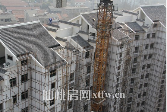 水云间的项目部,周围的部分防护网已经撤除,整体的效果已初步可现,门楼、门罩、马头墙等造型已经一揽眼前。
