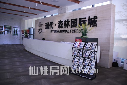 顺着这条商业街走能看到森林国际城的售楼部了,推门而入,看到简洁大方的前台和一排户型图的展架。