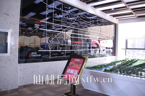 左手边的是沙盘讲解区,项目的沙盘和区位图再配合置业顾问的讲解,能让大家能快速的了解项目信息。