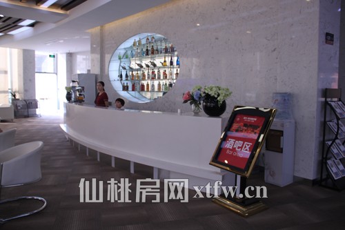 再往里走是洽谈区域和酒吧区,坐下之后,会有工作人员送来清凉解渴的果汁。我们到的时候正有两组客户与置业顾问在交流,说明大家对楼盘还是很认可的。