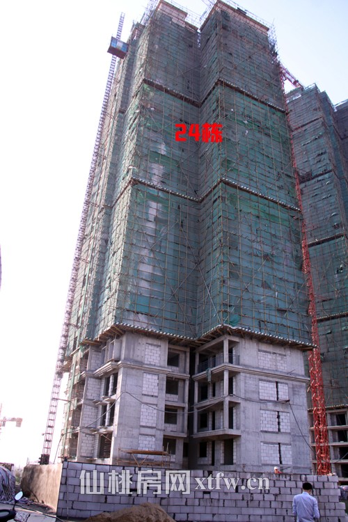 在北美风情商业街的左边是高层住宅了,这一排是24栋、21栋和18栋,这三栋都已封顶。