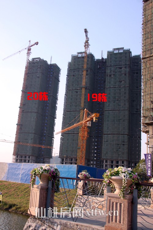 再往大湖的方向继续走,能看到19栋和20栋楼了,这两栋也已封顶了。