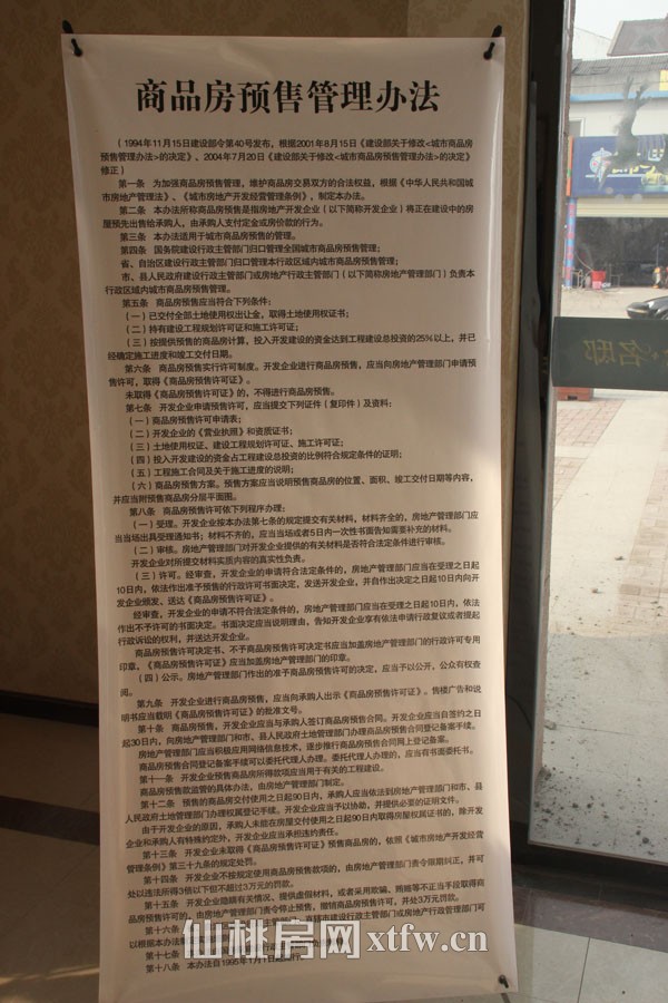 进入营销的大门,看到放在门口的“商品房预售管理办法”的立牌,可以让购房者在购房前更多的去了解商品房的知识。