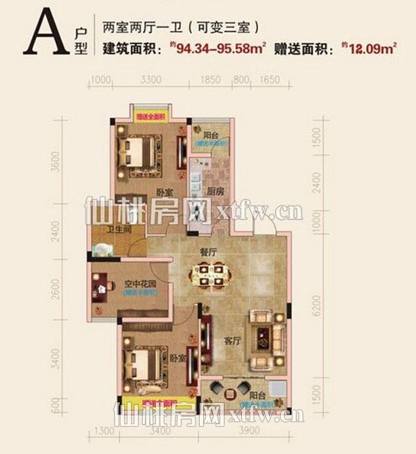 94㎡户型的空中花园