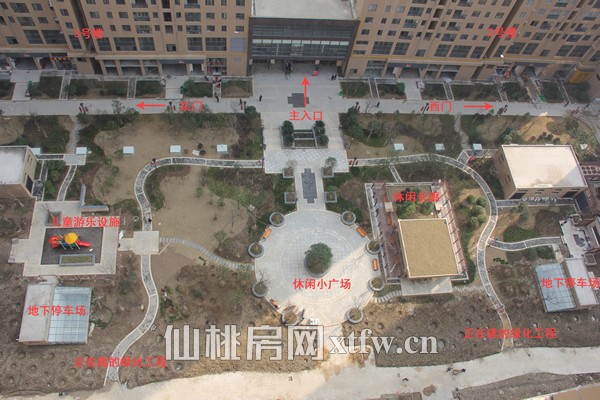 小广场两边的绿化基本都已经完成了,现在除了做5、6、7前的绿化之外,7号楼前的健身设施和5号楼的羽毛球场也在建设中。