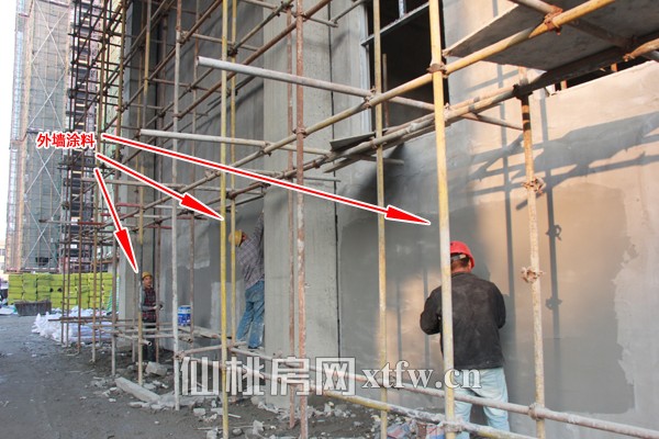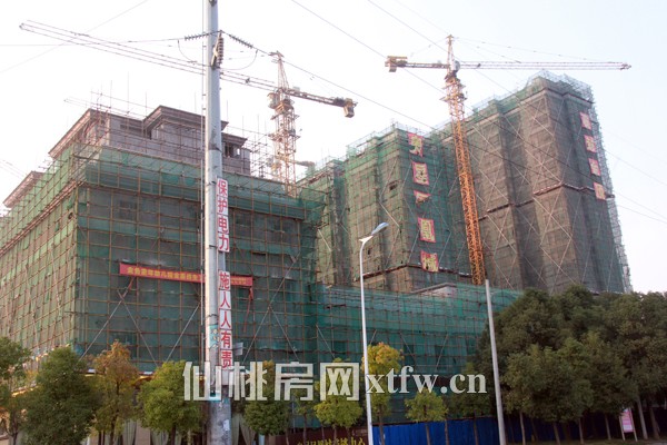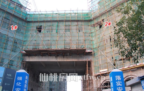 1#、2#楼正在进行内外墙装饰结构的施工。1#、2#楼共7层,下面为4层商业,上面为3层空中别墅。 9#楼进行内外墙装饰结构的施工。