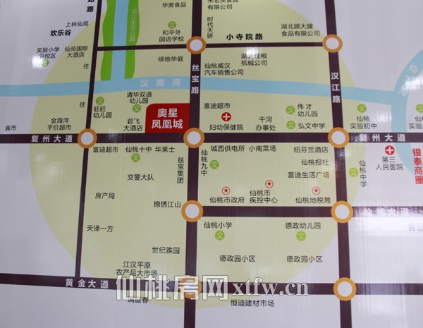 奥星凤凰城是附近有小清华双语幼儿园、市实验二小、仙桃中学市实验初级中学、弘文中学、丝宝中学、华兴中学、三中学、十中学、外国语学校、袁市实验小学,丰富的教育资源,良好的人文环境。 项目附近有工商银行,项目离妇幼保健院500米,医院有肝肾病医院、袁市医院项目周边有市人民政府、招商局、交通运输管理局、公路管理局,完善的市政配套。