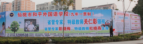 和平外国语学校的广告牌
