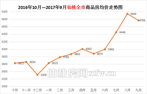 2017年9月商品房均价4766元/㎡ 趋于平稳