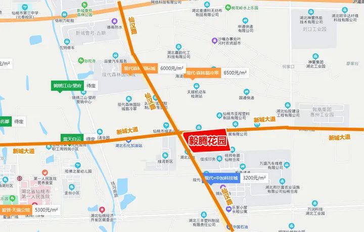 近年来沿新城大道建设的楼盘如雨后春笋般出现,该沿线也逐渐成为仙桃南城新的居住板块。随着城际铁路(施工中)、九年制学校(规划中)、新仙桃中学(规划中)的投入使用,片区将越发繁华。