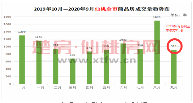 2020年9月仙桃全市商品房成交913套