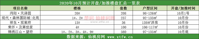 在金九尾声,据有关数据统计,10月仙桃各城区将有4盘入市,其中仙桃南城有超4个项目为纯新盘入市。到时候开盘情况如何,我们拭目以待!