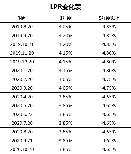 自制LPR变化表如下: