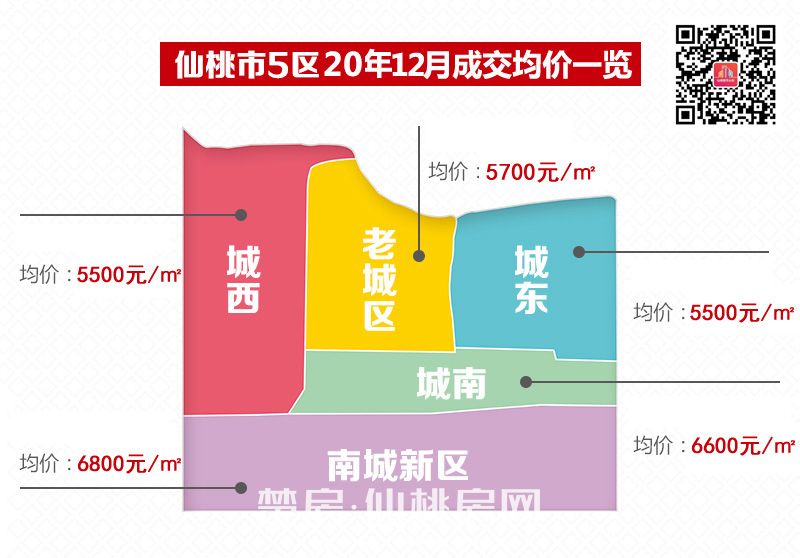 仙桃2020年五区成交均价图
