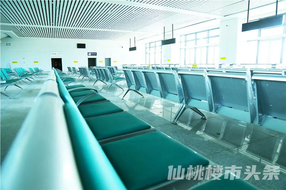候车大厅的凳子悉数到位,且安装完成,和仙桃站里的一样,蓝绿色、皮质坐凳,已整齐的摆放在乘车出入口区域。