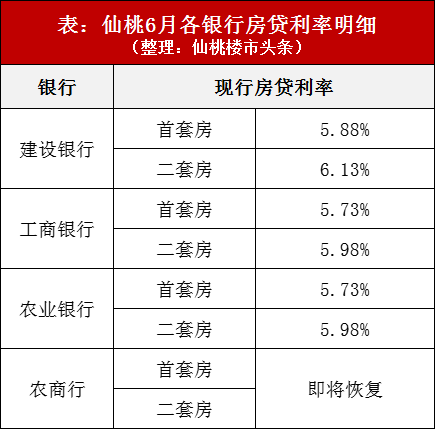 图:仙桃6月房贷利率一览,具体上浮比例以银行审核为准