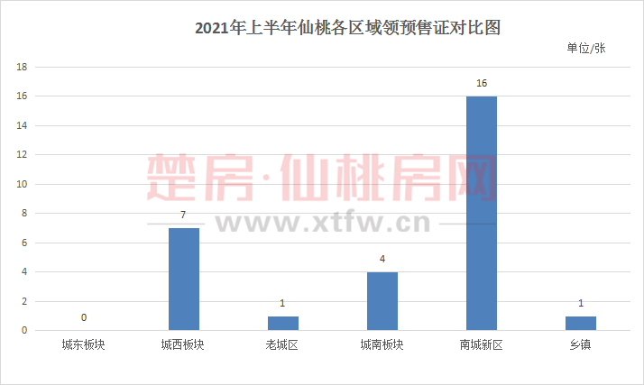 上半年仙桃共发放29张预售证,从各区域具体获证数量来看:热门板块南城新区首当其冲,取得16张预售证,区域占比超50%,一区就“抗下”一半的货量;城西板块紧随其后,以7张预售证的成绩位列第二。