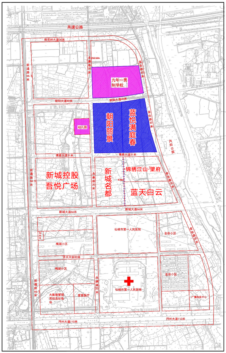 项目优势:项目正大门旁有公立幼儿园,一条马路之隔就是仙桃三中朝阳校区(小学初中),目前还在规划中师资力量十分雄厚、仙桃二中南城校区、实验三小、新三中等,覆盖了幼儿园、小学、初中和高中全龄教育。仙桃三中朝阳校区在下图范围内: