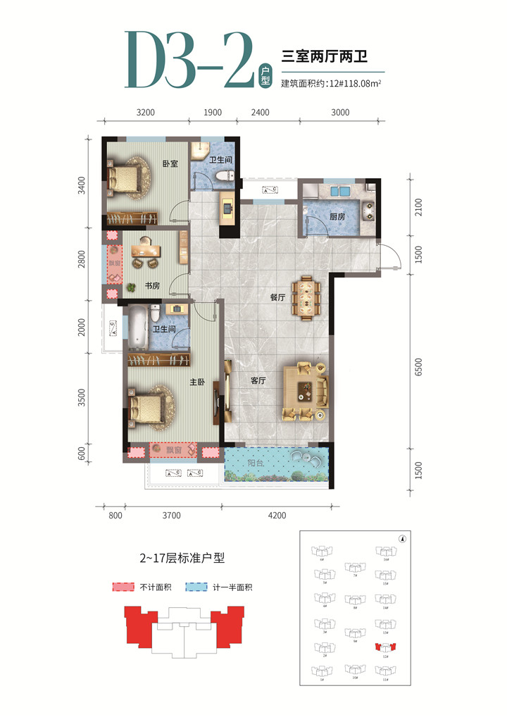 双卧室南向大飘窗设计,为生活增添更多创意空间。