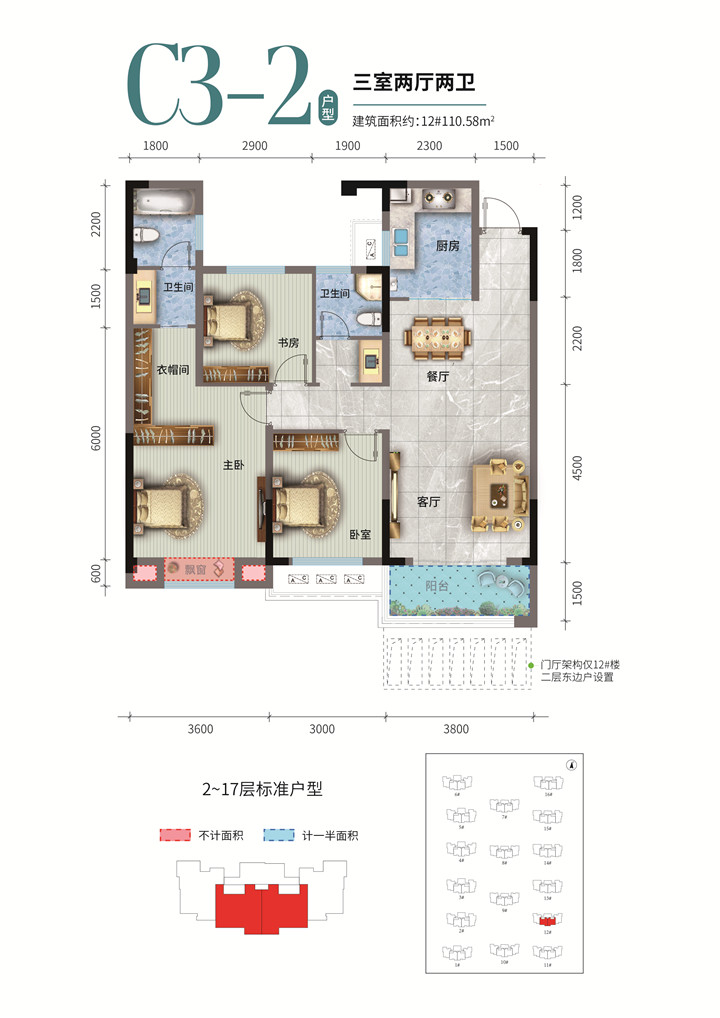 南向阳台:景观阳台,观景娱乐,彰显生活格调;