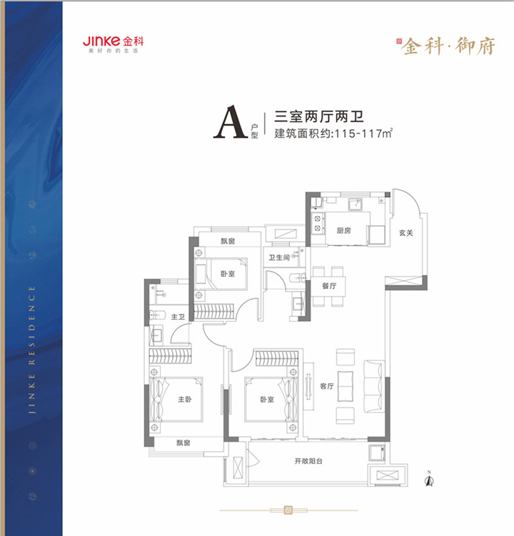 荣怀·及第世家尽享优质人居,中正户型,三室两厅两卫,动静分离,生活更惬意。三开间朝南,四季光照充足,环境明亮。建面约110㎡户型,尽享温馨氛围。