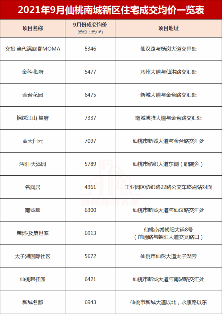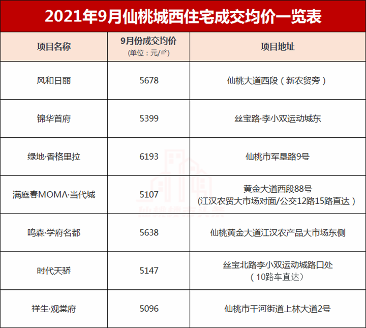 注:以上数据源于仙桃市房地产市场信息发布平台,仙桃房网整理所得。部分可能由于交易量等原因造成均价高于或者低于实际房价,仅供参考,一切以具体实际为准!