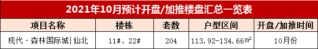 九月已经过去,“银十”还有哪些项目能够满足仙桃人挑剔的“胃口”呢?10月仙桃全市预计有1个项目现代·森林国际城|仙北有加推计划,分别推出11号楼小高层和22号楼高层,共计204套,户型建面约113.92-134.66㎡。