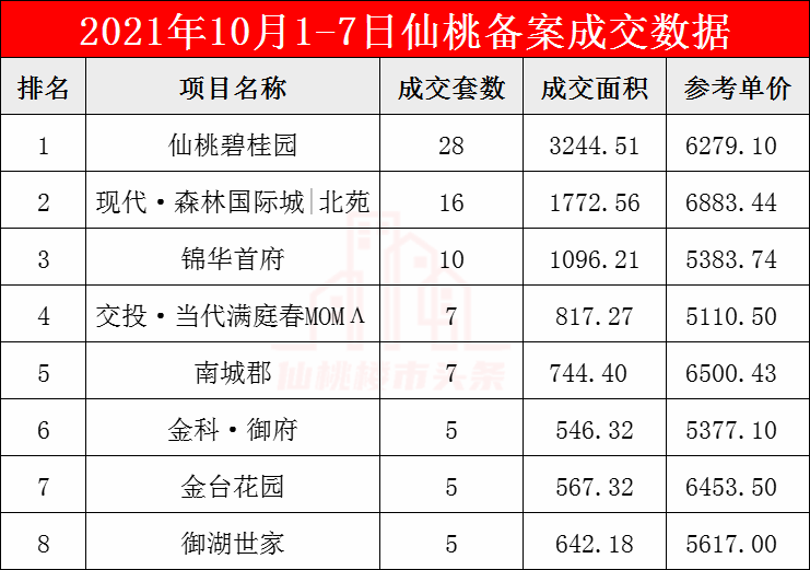 现在还是买房的时机吗?据仙桃房地产信息网数据显示,10月1日至7日,全市成交量排名前八的楼盘,分别为: