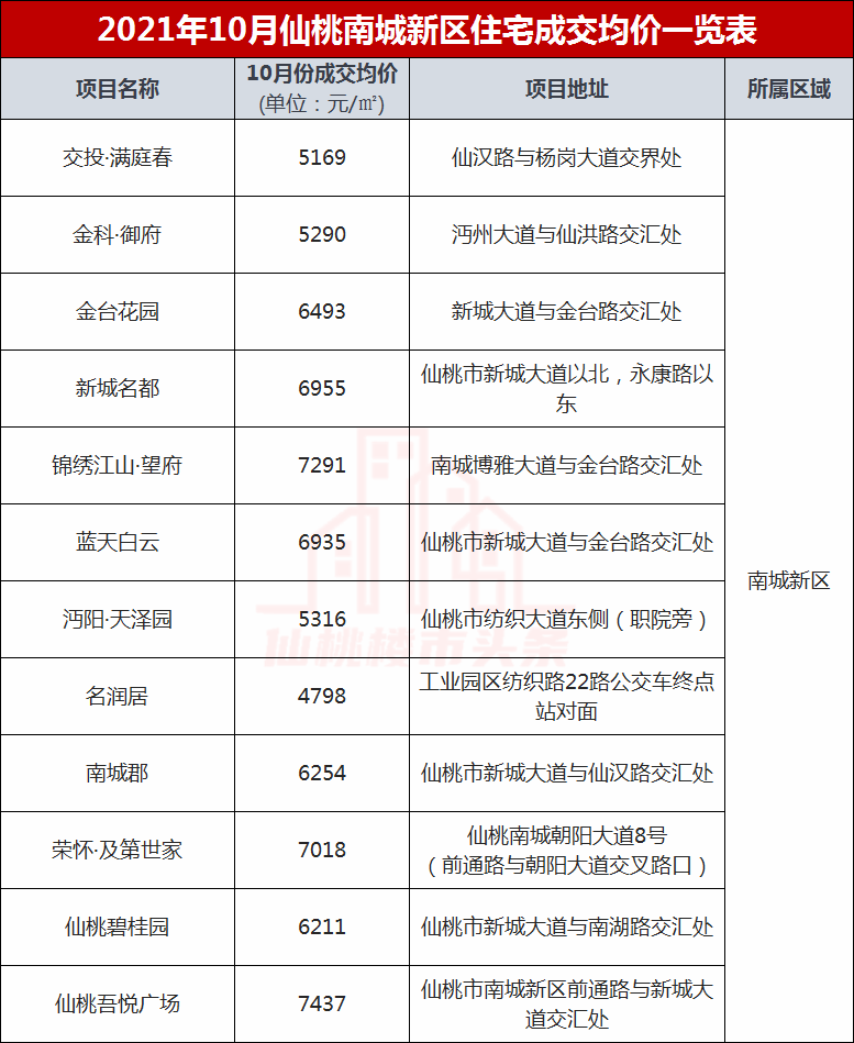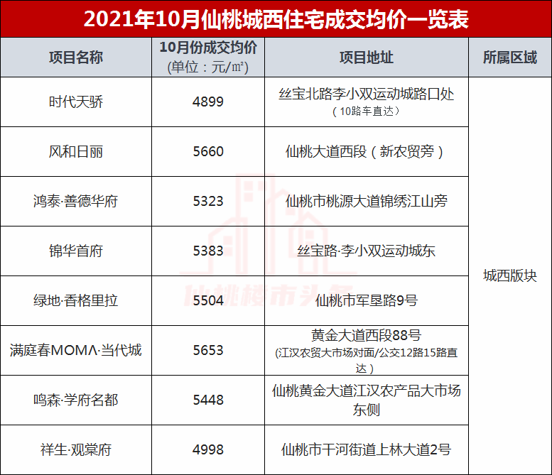 注:以上数据源于仙桃市房地产市场信息发布平台,仙桃房网整理所得。部分可能由于交易量等原因造成均价高于或者低于实际房价,仅供参考,一切以具体实际为准!