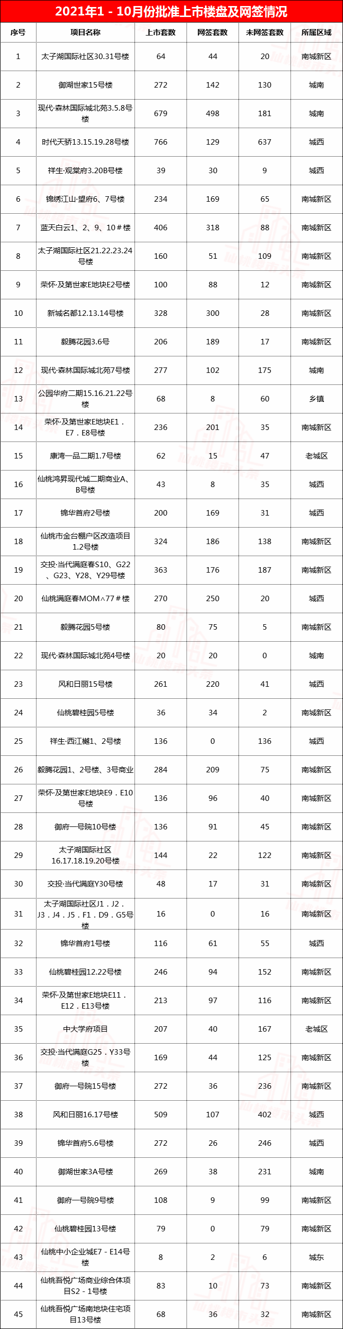 再有不到两个月的时间,2021年就要画上句号了。回顾十月的仙桃楼市,新建商品房供应159套,销售554套;其中,新建商品住房销售503套,销售面积6.13万平方米。