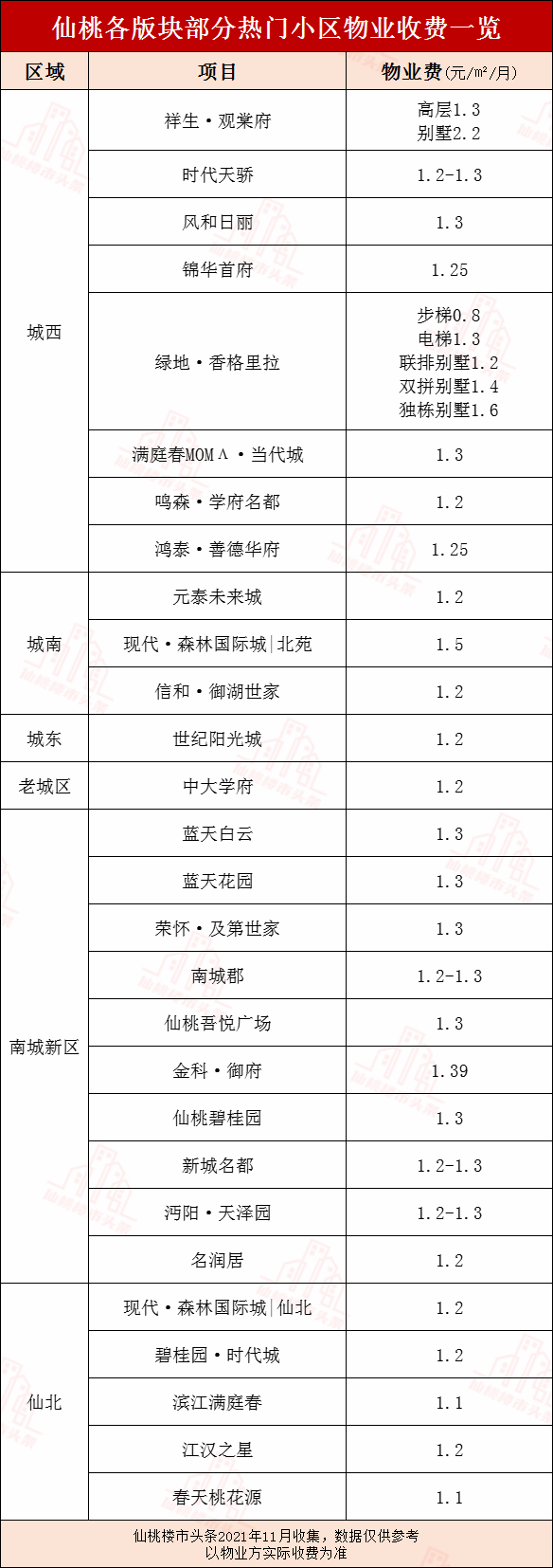 1、仙桃28个热门小区物业费曝光,平均1.3元/㎡/月