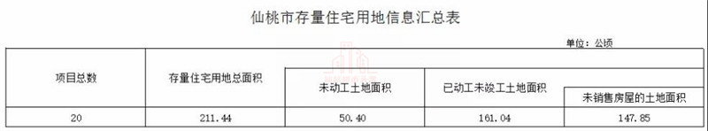 其中,未动工土地面积50.40公顷,已动工未竣工土地面积161.04公顷,已动工未竣工的土地中,未销售房屋的土地面积,147.85公顷。