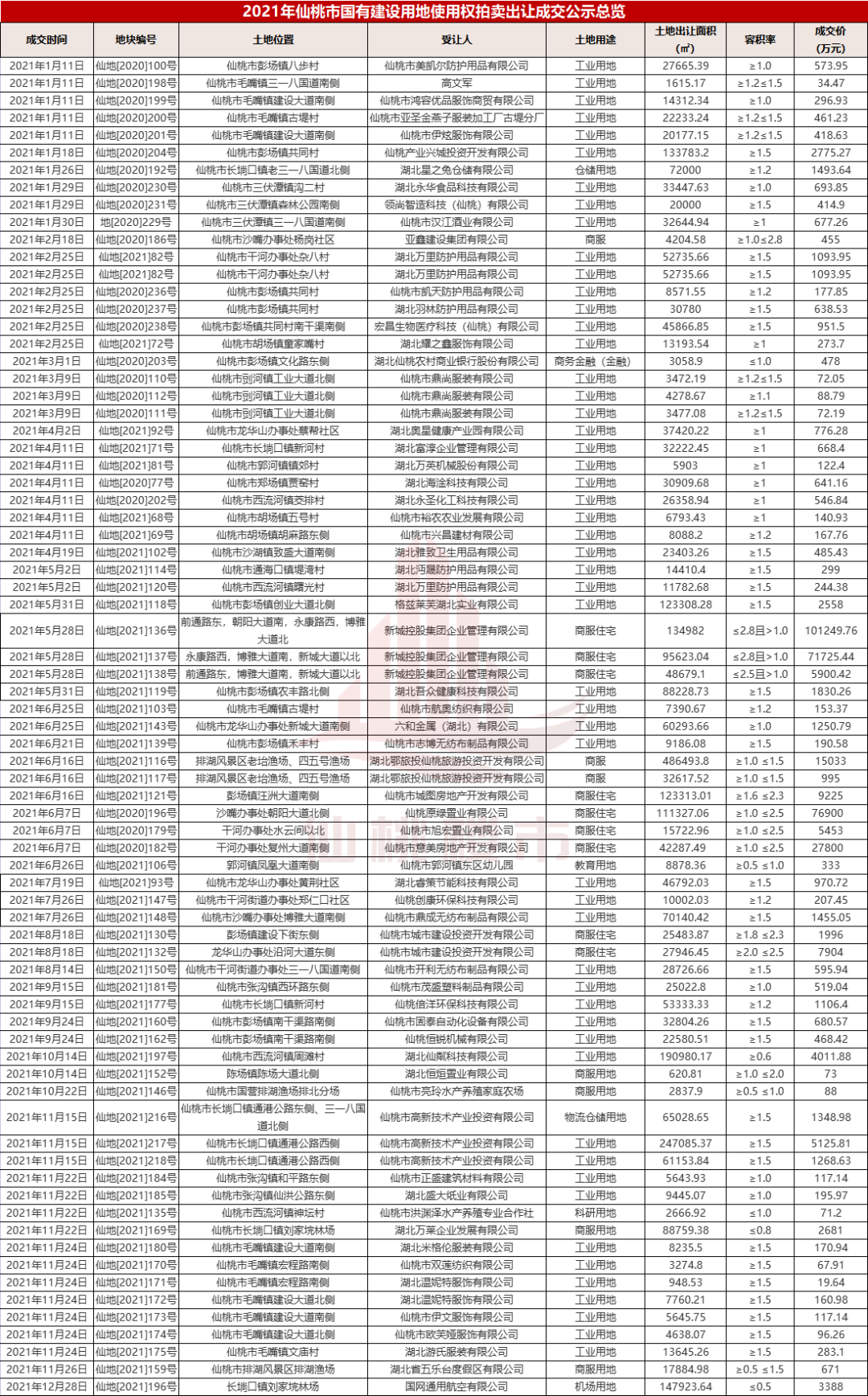 *2021年仙桃市国有建设用地使用权拍卖出让成交公示总览