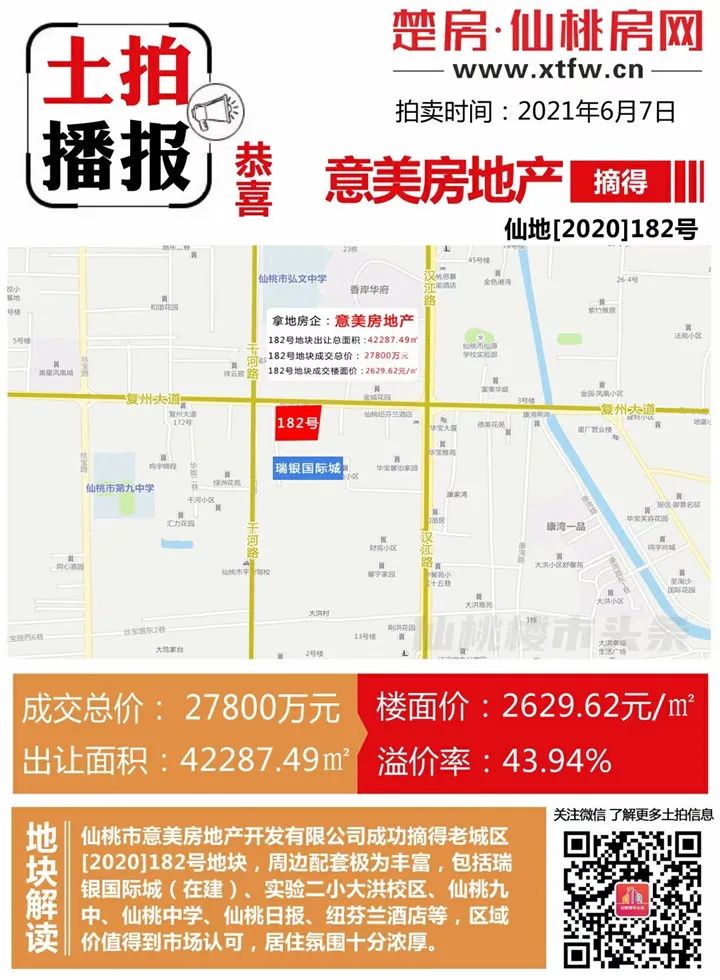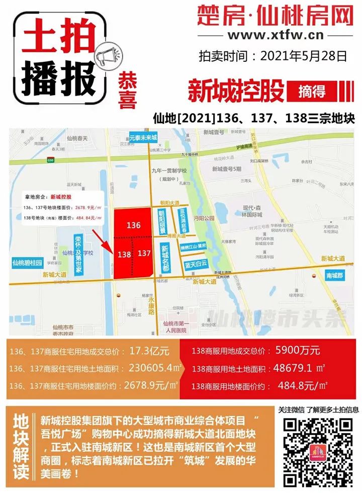 ◆2021年仙桃土拍市场开门红,南城新区大型商业综合体项目确定,吾悦广场进入仙桃!