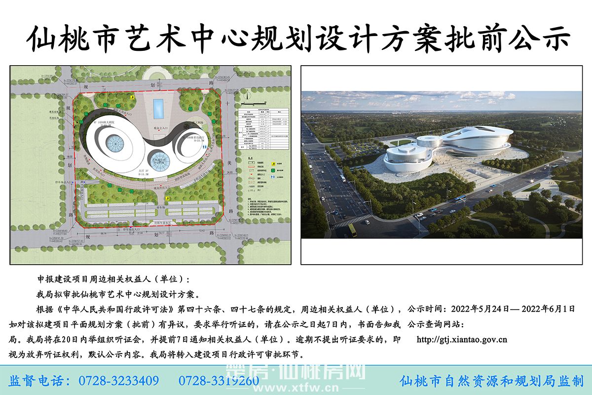 与仙桃中学新校区同期公示的城建项目,还有位于沔州大道以南、民生路以西的仙桃市艺术中心项目,规划有艺术展厅、500座多功能厅、1450座大剧院等。