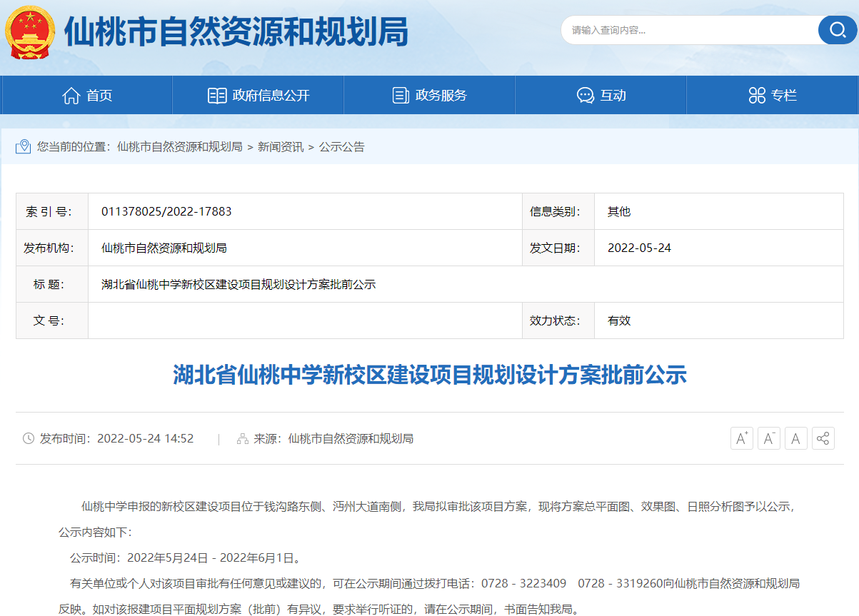 5月24日,位于南城新区钱沟路东侧、沔州大道南侧仙桃中学新校区建设项目,规划设计方案批前公示正式出炉,一起来看看吧。