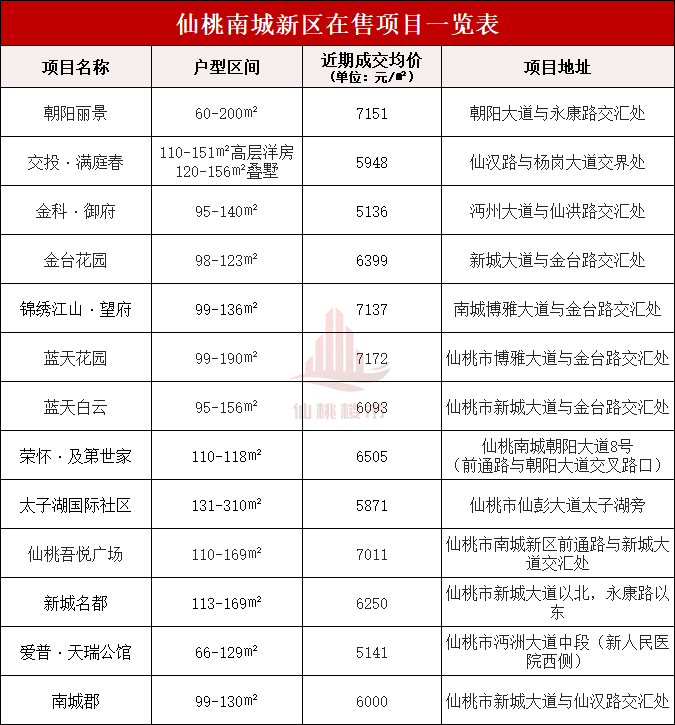 此外,仙桃中学新校区所在的南城新区,目前在售的住宅项目也较多,产品形态有洋房、小高层、高层、叠墅、四代住宅等,选择丰富,房源充足。
