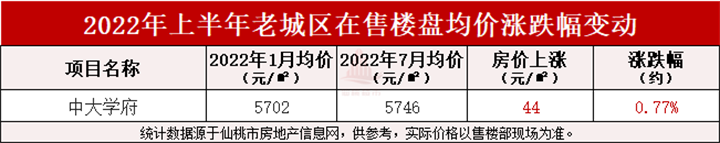 据统计数据显示,仙桃市2022年1月商品房成交均价为5577元/㎡,7月商品房成交均价为6059元/㎡,涨幅约8.64% ↑。