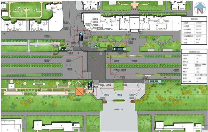 ★规划总建筑面积851.50平方米,其中地下共一层,建筑面积605.73平方米;地上建筑总面积245.77平方米(包含出入口)。设有人行入口2个,非机动车出入口1个。