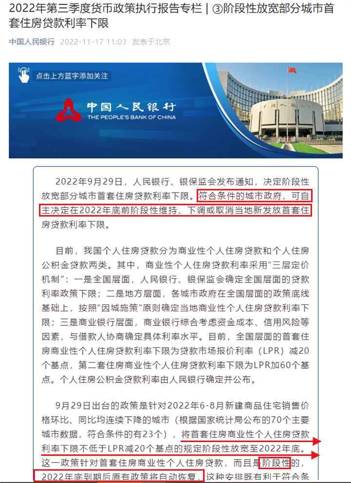 但需要注意的是,在11月17日发布的央行第三季度货币政策执行报告中,提及该规定阶段性放宽至2022年底,而且是阶段性的,2022年底到期后,原有政策将自动恢复。