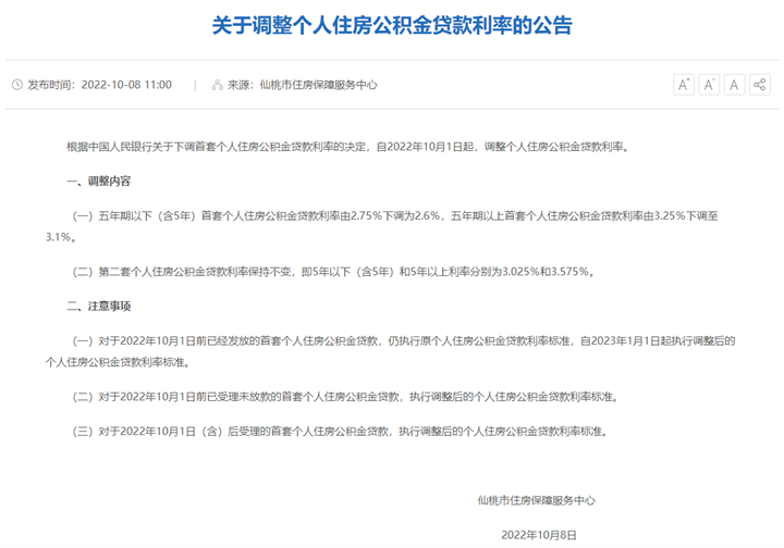 自2022年10月1日起,调整个人住房公积金贷款利率。