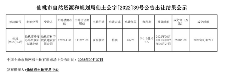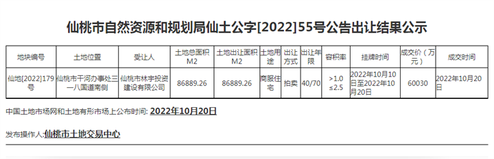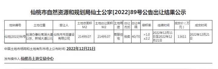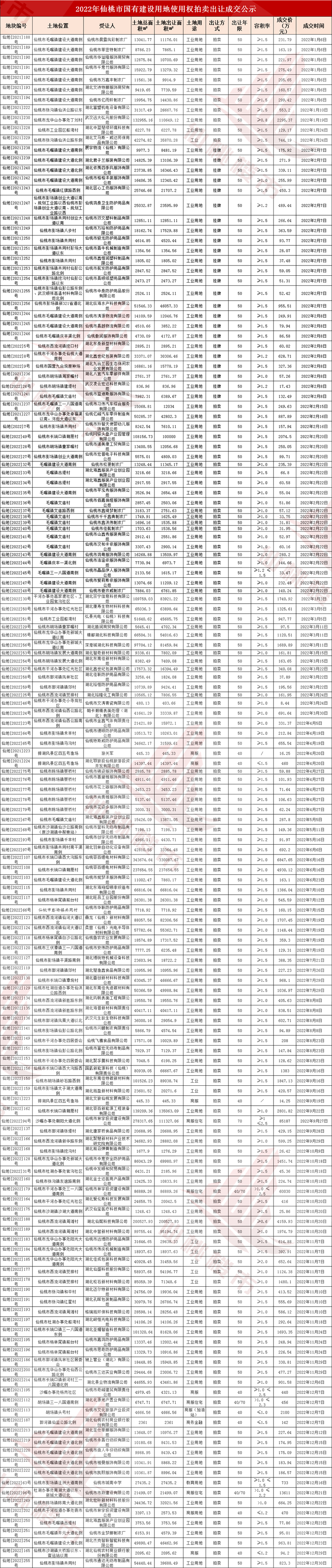 *2022年仙桃市国有建设用地使用权拍卖出让成交公示总览