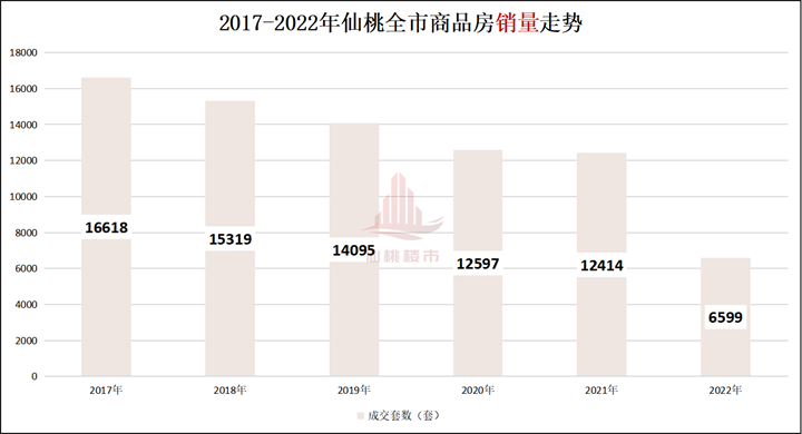 *2017—2022年仙桃全市商品房成交销量走势图