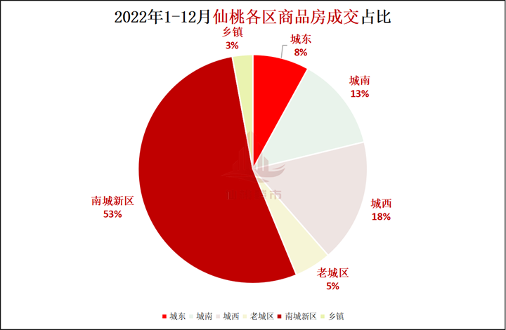 *2022年仙桃各区商品房成交占比图