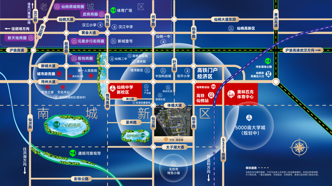 交投·满庭春项目位于仙桃市南城新区,仙汉大道东侧,杨岗大道南侧,是由湖北交投集团用心打造的实力大盘。