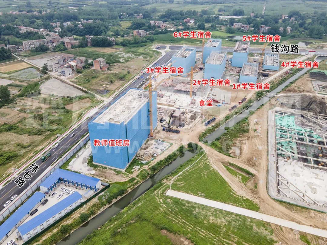 教师值班房、2#、3#、6#学生宿舍已封顶;