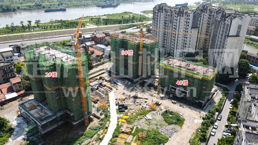 据小编在旭宏·水云间五期项目现场工地所见,目前有3栋楼正在建设中,其中2#楼已建至第13层(规划总高23层),4#楼已建至第7层(规划总高16层),5#楼已建至第12层(规划总高21层)。