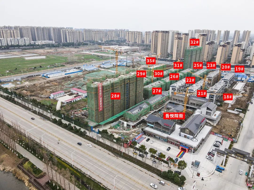 A1#、A2#、A3#、A6#、A7#、A8#、A11#楼主体结构均已封顶,正在进行外墙施工